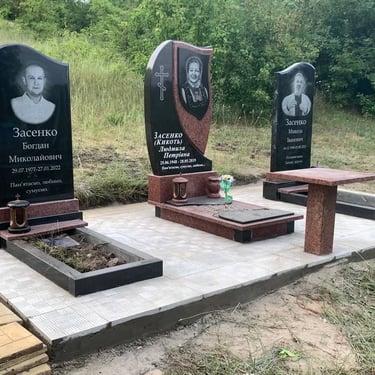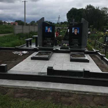 Комплекси з граніту — це елегантні та вишукані меморіальні композиції, що включають в себе не лише пам'ятник, а й додаткові елементи, такі як огорожі, лави, стели та декоративні елементи.
